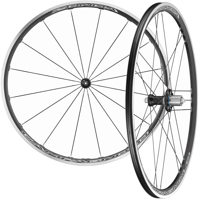 Der perfecte Laufradsatz fuer Renn- und Trainingseinsatz. Das 2017er Modell der Campa Zonda mit breiteren Felgen, ungelochten Felgen, verdrehgesicherten leichteren Speichen, sehr gut verarbeitet, mit unterschiedlich hohen 26 und 30 mm Felgen, Aerospeichen in der G3Mega Einspeichung und hochwertigen Lagern, die Campagnolo Zonda Laufraeder.