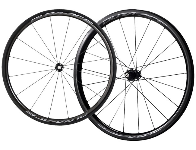 Die high End Laufraeder mit Shimanos patentierte Felgentechnologie, Carbon Grundkoerper verbunden mit dem Aluminium Felgenbett. Diese Technik ermoeglicht sehr leichte Laufraeder mit bestem Bremsverhalten. Ausgestattet mit unterschiedlich hochen Felgen, am Hinterrad fuer hohe Steifigkeit mit asymetrischer Felge und den hochfesten doppeldickend Edelstahl Aerospeichen bieten die Shimano WH-R9100-C40-CL Laufraeder die perfecten Race Laufraeder