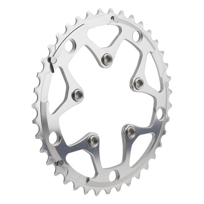 Dieses Kettenblatt erlaubt die Montage eines dritten Kettenblattes an 2 fach Rennradkurbeln mit 130 mm Lochkreis. Die Aufnahme fuer das kleine Kettenblatt hat den Lochkreis 74 mm.