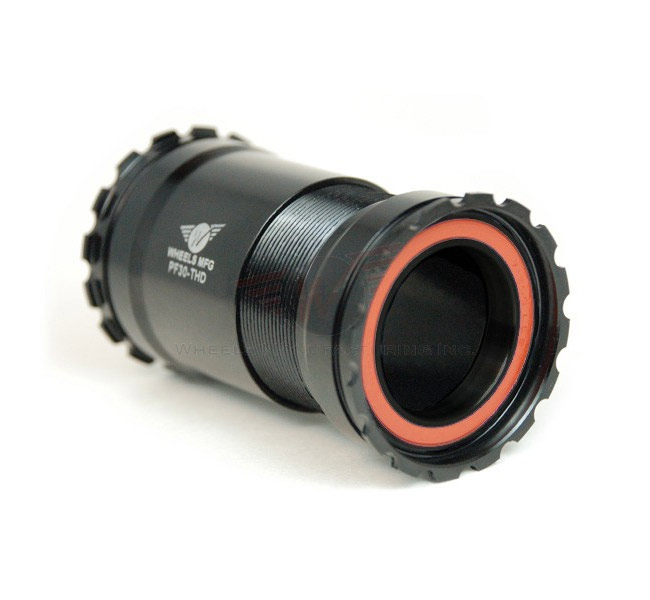 Diese Threaded Innenlager von Wheeels Manufacturing bieten die Moeglichkeit MTB und Road Kurbeln mit 30 mm Achsen in Rahmen mit Pressfit 30, Specialized Carbon OSBB und BBRight Tretlagergehaeusen mit 61-79 mm Breite und 46 mm Einpressmass zu montieren.