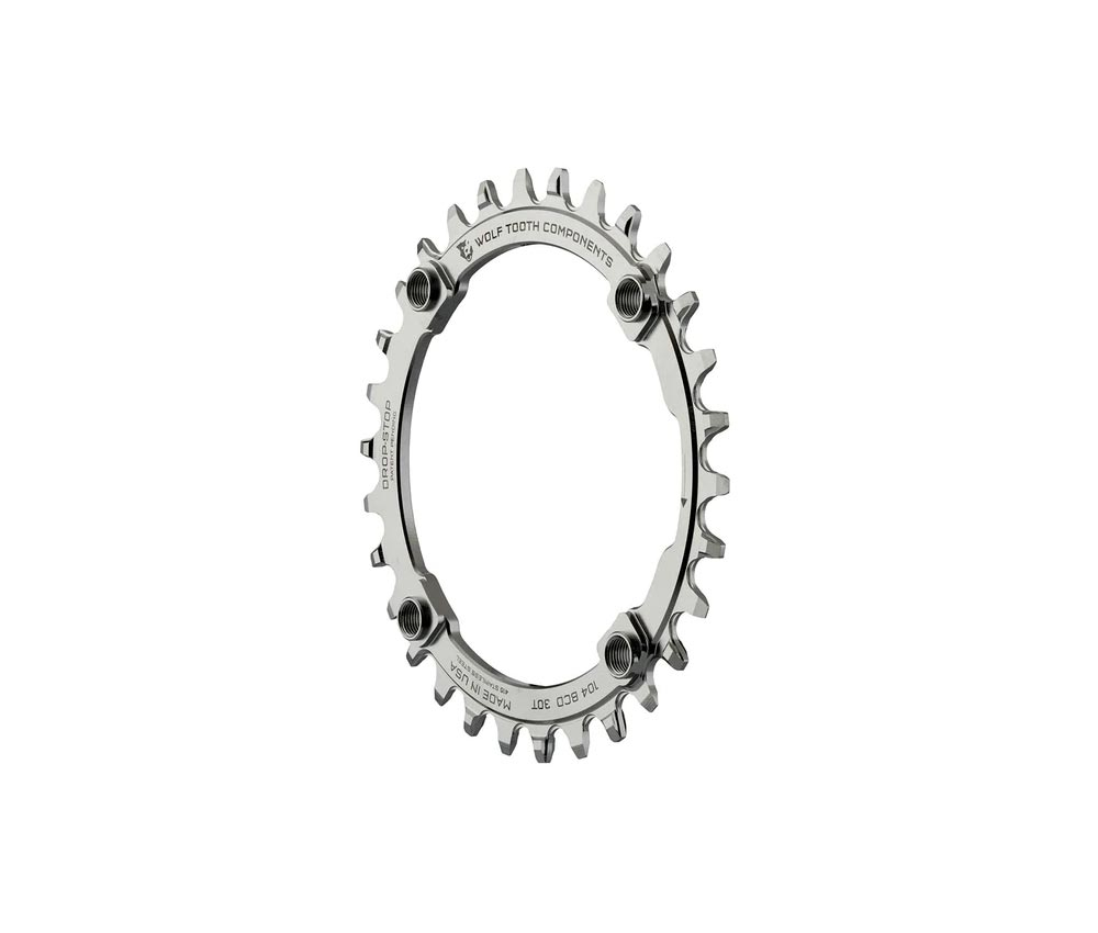 Die Edelstahl Kettenblaetter sind die Erste und ultimative Wahl in Sachen Haltbarkeit. Sie sind nicht nur schoen, sondern halten auch 5-10 mal laenger als die Aluminium-Ausfuehrung. Das liegt am Wolf Tooth verwendeten 416 Edelstahl der extrem hart ist, die Bearbeitung ist sehr aufwendig, nach dem Fraesen wird das Kettenblatt zusaetzlich Elektropoliert, was sich alles im Preis und in der Materialguete wiederspiegelt.