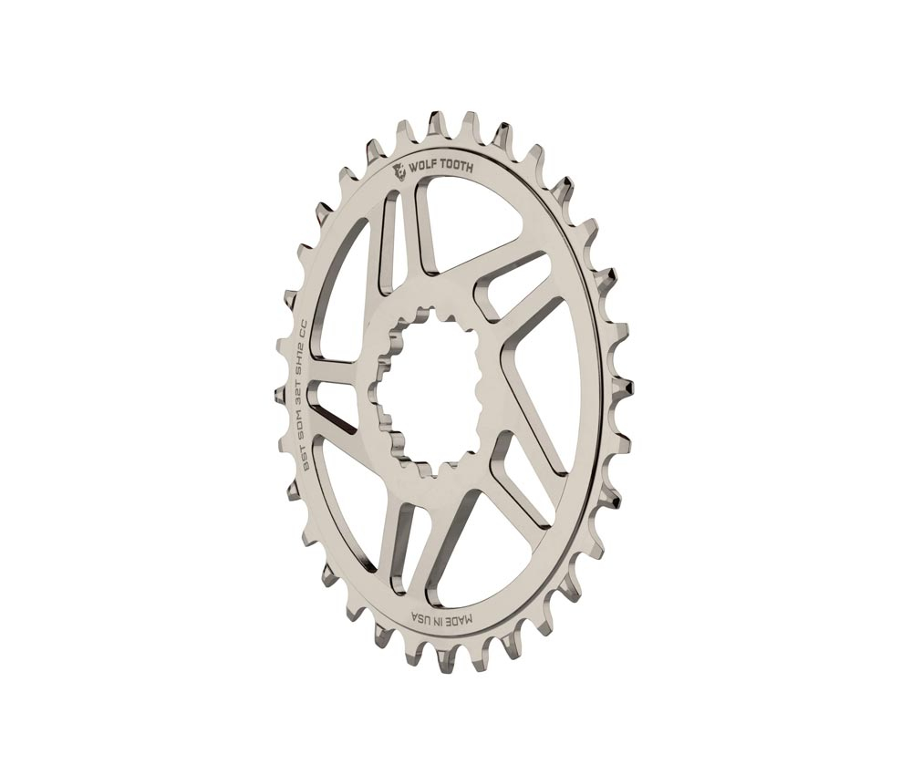 Das patentierte Drop Stop ST Narrow-Wide-Zahnprofil von Wolf Tooth bietet die ultimative Kettenfuehrung und Selbstreinigung fuer Shimano HG+ 12-fach Ketten. Die rechte Seite des Zahns ist so breit wie moeglich, um die Kontaktflaeche zur Kette zu maximieren. Mehr Kontaktflaeche bedeutet, dass die Belastung auf einer groesseren Flaeche verteilt wird, was wiederum den Verschleiss reduziert. Die linke Seite des Zahns ist schmaler als der Rollenstift der Kette, darum hat Wolf Tooth zusaetzliches Material entfernt, um einen Kanal zu schaffen damit Schmutz abfliessen kann. Mehr Kontaktflaeche und Platz bedeutet wiederum eine geringere Wahrscheinlichkeit das die Kette beim fahren durch Schmutz herunterfaellt.