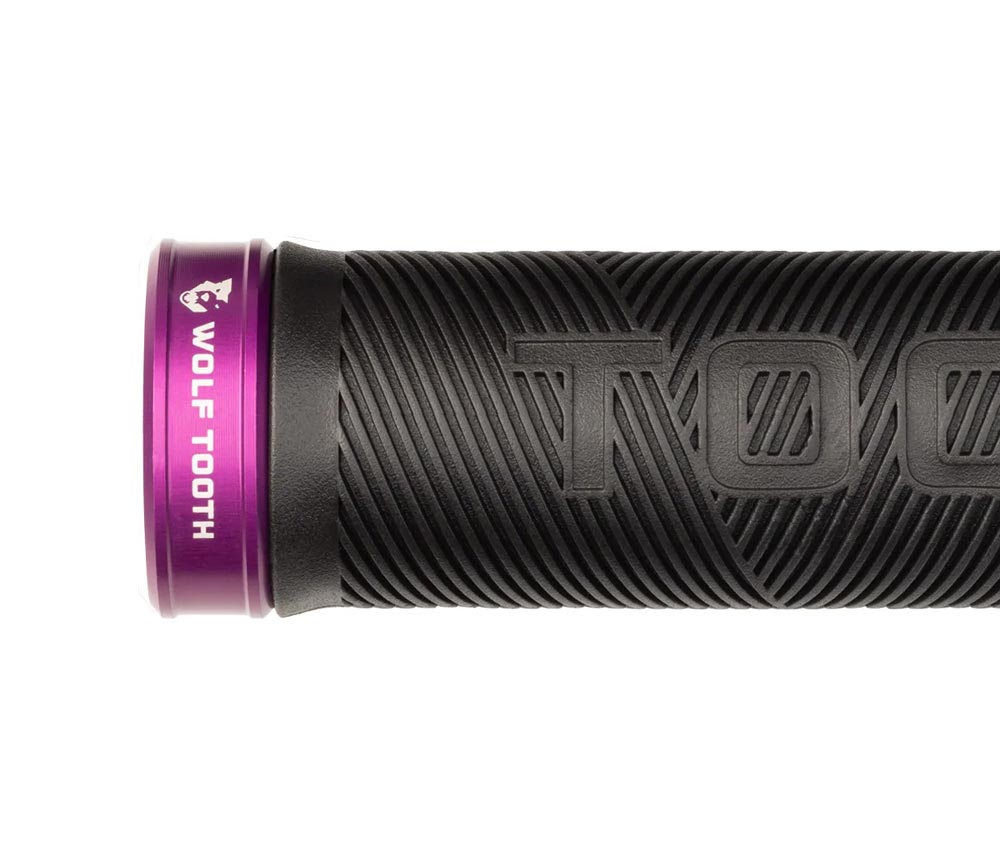 Das Griffmaterial fuehlt sich weich und klebrig an, waehrend das abwechselnde diagonale Muster die Hand bei allen Bedingungen an Ort und Stelle halten. Die Klemmringe sind aus eloxierten Aluminium, verschraubbar und fixieren die Griffe fest am Lenker. Den Abschluss bilden die mitgelieferten Stopfen, welche den Lenker verschliessen und das Eindringen von Schmutz verhindern. In den Griffen koennen uebrigens seperat erhaeltliche Wolf Tooth EnCase System Huellen verstaut werden um immer das passende Werkzeug fuer unterwegs dabei zu haben.
